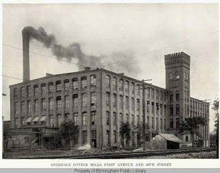 Avondale Mills was built just outside the limits of the town in 1897 and became one if the area's largest employers. Important manufacturer's in Avondale included the Smith Gin Company (later merged into the Continental Gin Company, and the Avondale Stove and Foundry Company.